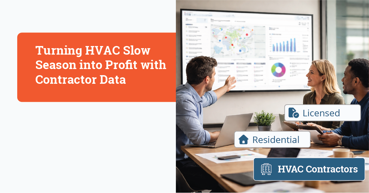 - Contractor data is especially helpful during slow seasons, when use cases include whitespace analysis and territory planning, co-op funds and marketing development fund (MDF) prioritization, and A2L and electrification product positioning.